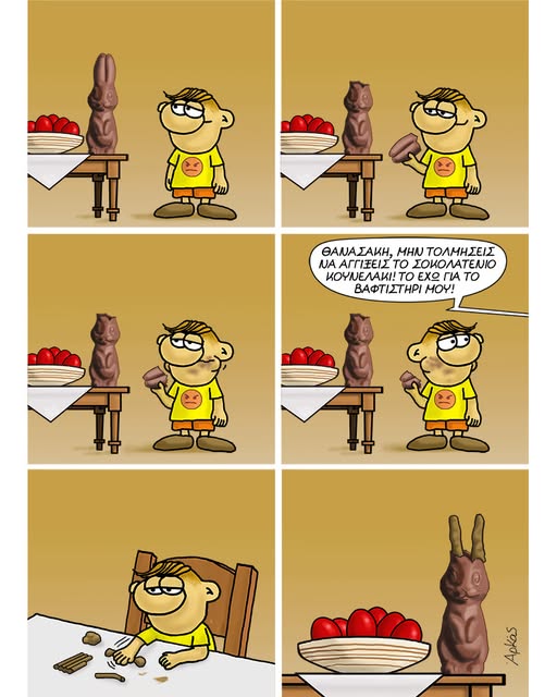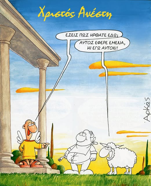 Εδωσε ρεσιτάλ φέτος ο Αρκάς. Με μια σειρά σκίτσων, εμπνευσμένων από το Πάσχα, σκόρπισε άφθονο γέλιο στους θαυμαστές του.