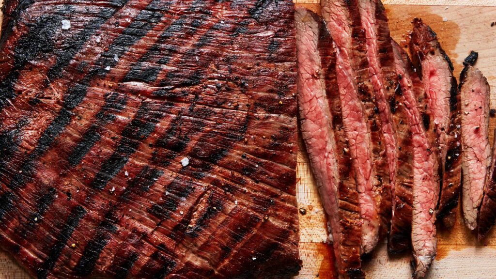 Η μπριζόλα Flank steak προέρχεται από τη κοιλιά του μοσχαριού και πρόκειται για ένα καλά ασκημένο μέρος του ζώου, παραμένει ιδιαίτερα νόστιμο παρά την φτωχή λιπαρή δομή του. Χρειάζεται αργό μαγείρεμα / ψήσιμο για να διατηρήσει την τρυφερότητά του.