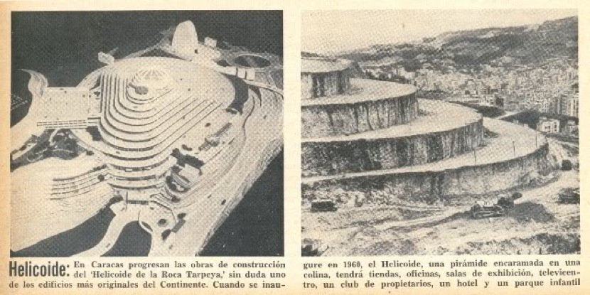 Το El Helicoide σχεδιάστηκε αρχικά ως ένα υπερσύγχρονο συγκρότημα ψυχαγωγίας στο κέντρο του Καράκας, με κινηματογράφους, ξενοδοχείο και καταστήματα. Η πολιτική αστάθεια και η πτώση του δικτάτορα Marcos Pérez Jiménez οδήγησαν στην εγκατάλειψή του.