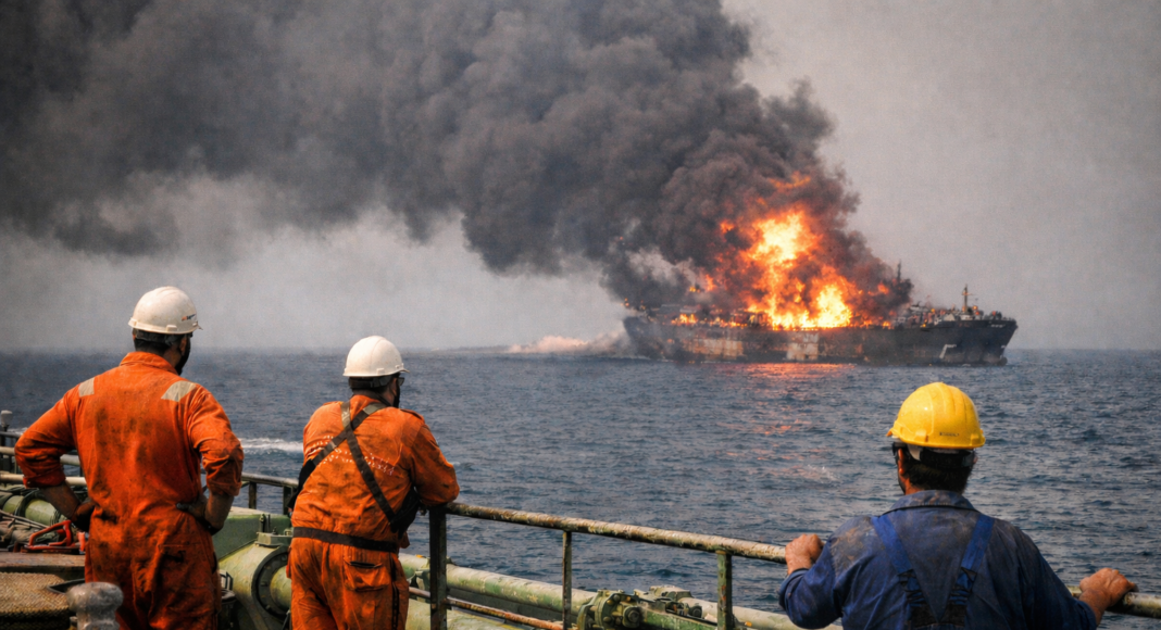 Οι εικόνες από επιθέσεις σε δεξαμενόπλοια, που τυλίχθηκαν στις φλόγες μετά από πυραυλικά χτυπήματα, έχουν εντείνει τον πανικό στα πληρώματα.