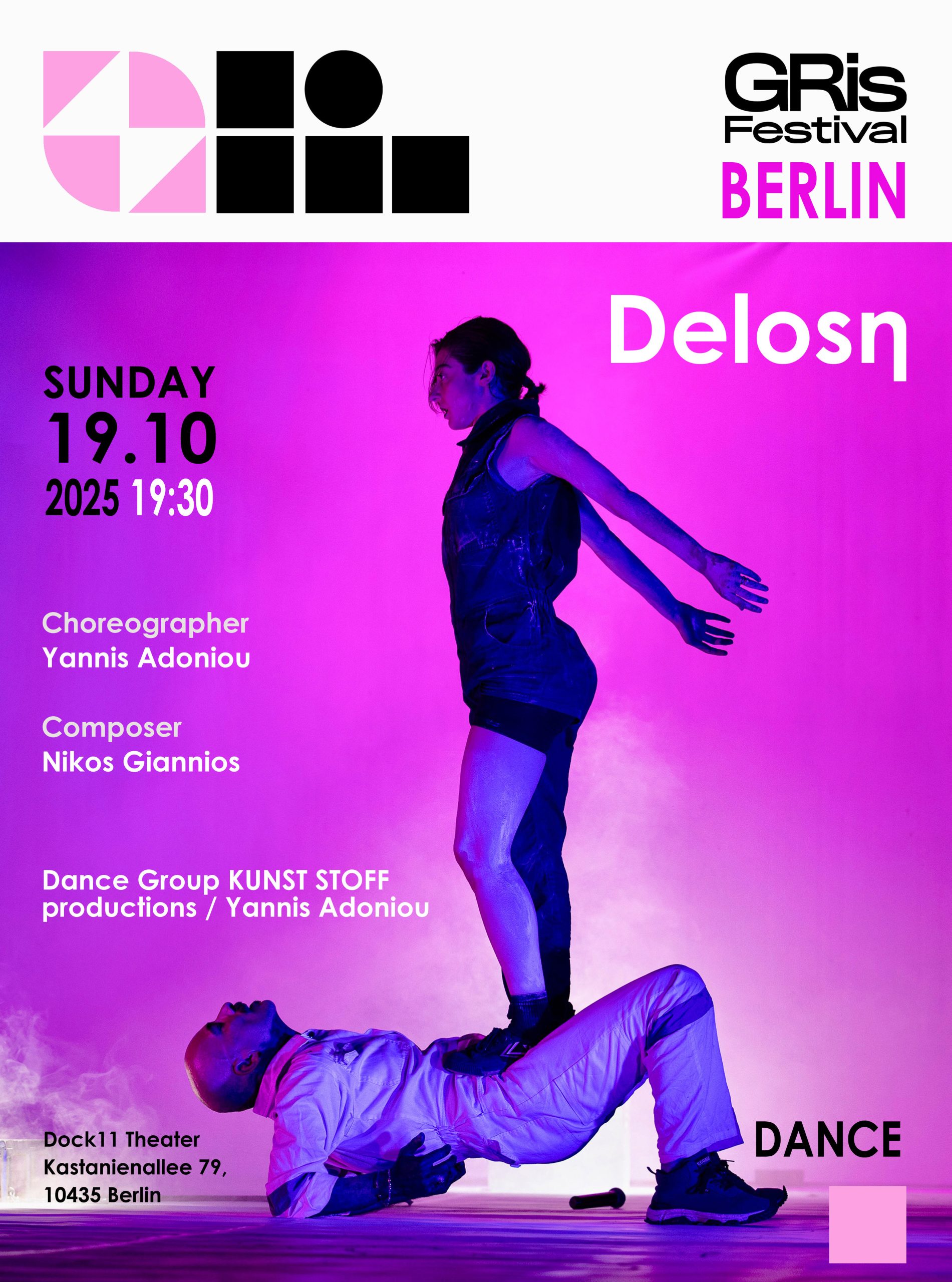 Το έργο “Delosη” αποτελεί μια πρωτότυπη παράσταση σύγχρονου χορού από τον διεθνώς αναγνωρισμένο Έλληνα χορογράφο Γιάννη Αντωνίου. Το έργο είναι εμπνευσμένο από την ιστορία του νησιού της Δήλου. Καθώς αναζητούμε ένα σημείο επαφής μεταξύ του παρελθόντος και του παρόντος, τα σύγχρονά μας σώματα γίνονται αγγεία δημιουργίας και ανακάλυψης για μια προσωπική πατρίδα.